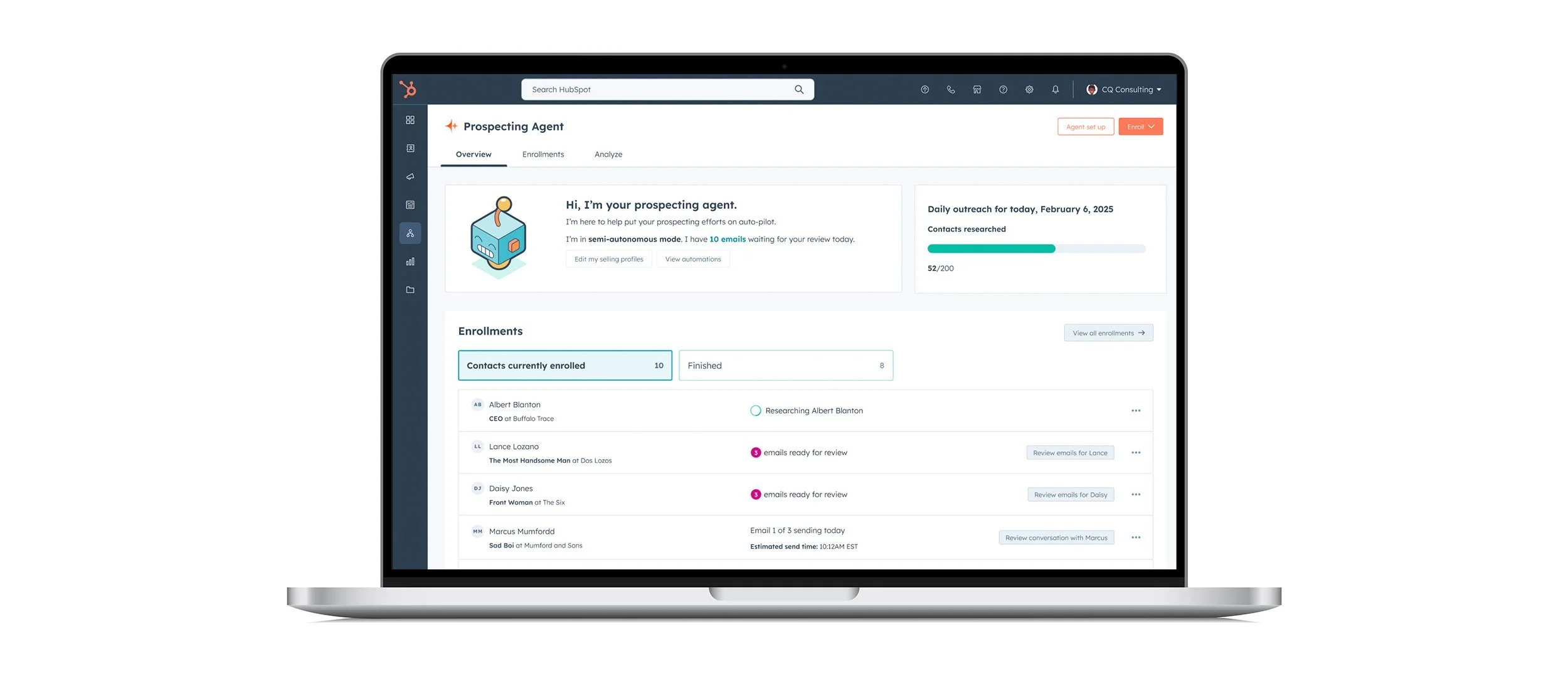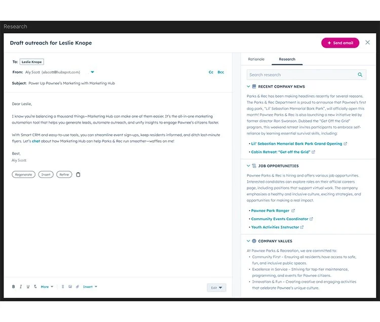 Increase sales teams capacity and free up valuable time by researching and executing personalized outreach strategies for prospects within HubSpot's CRM. Use the companies data to create personalized outreach. This AI-powered agent should always be on, driving pipeline for teams 24/7. It should be easy to use, connect with your data and drive results fast.