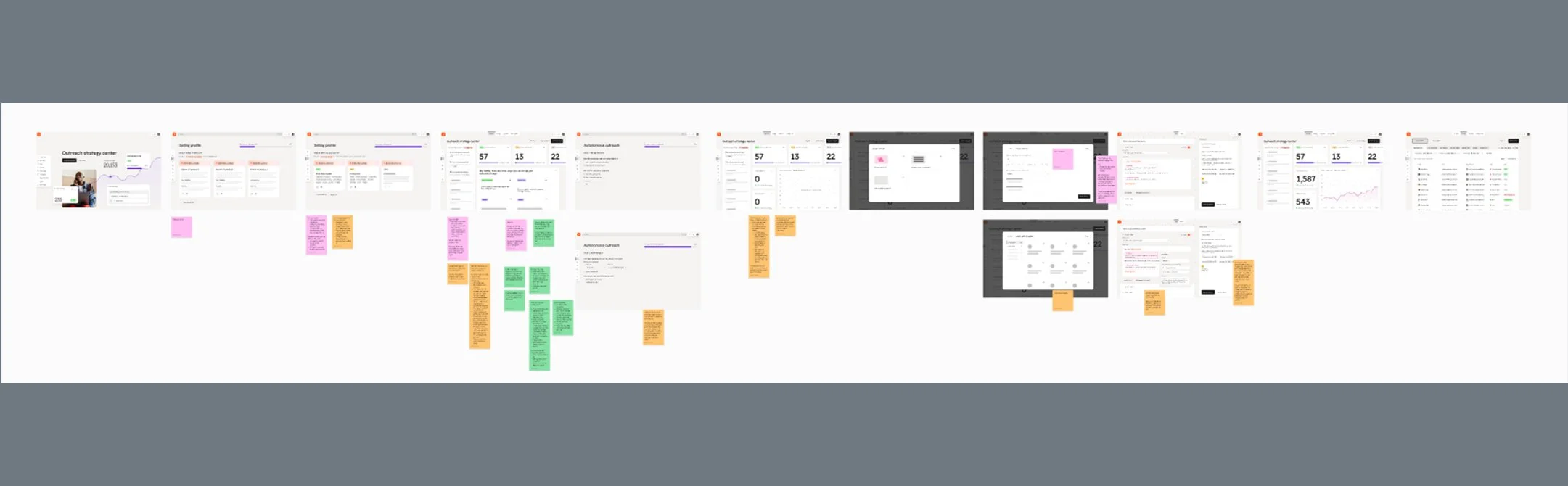 I was able to group the feedback into core themes we would use to guide our user flows and journeys: Sourcing, Researching, Outreach and Hand-offs
