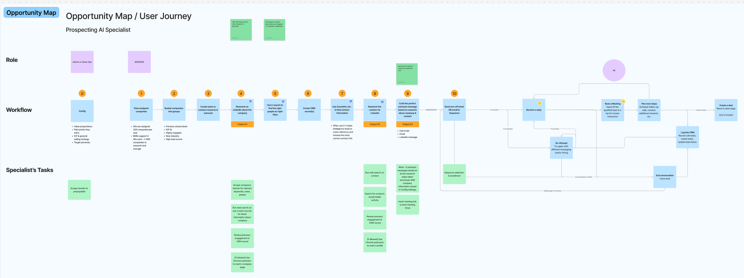 To deepen my understanding of the problem space I spent 2 weeks speaking with 30+ customers from small, medium and large size businesses. When I wasn’t speaking to a customer - I was analyzing data we had available from our existing prospecting tools (Sequences, meetings, templates, email workflows etc.)