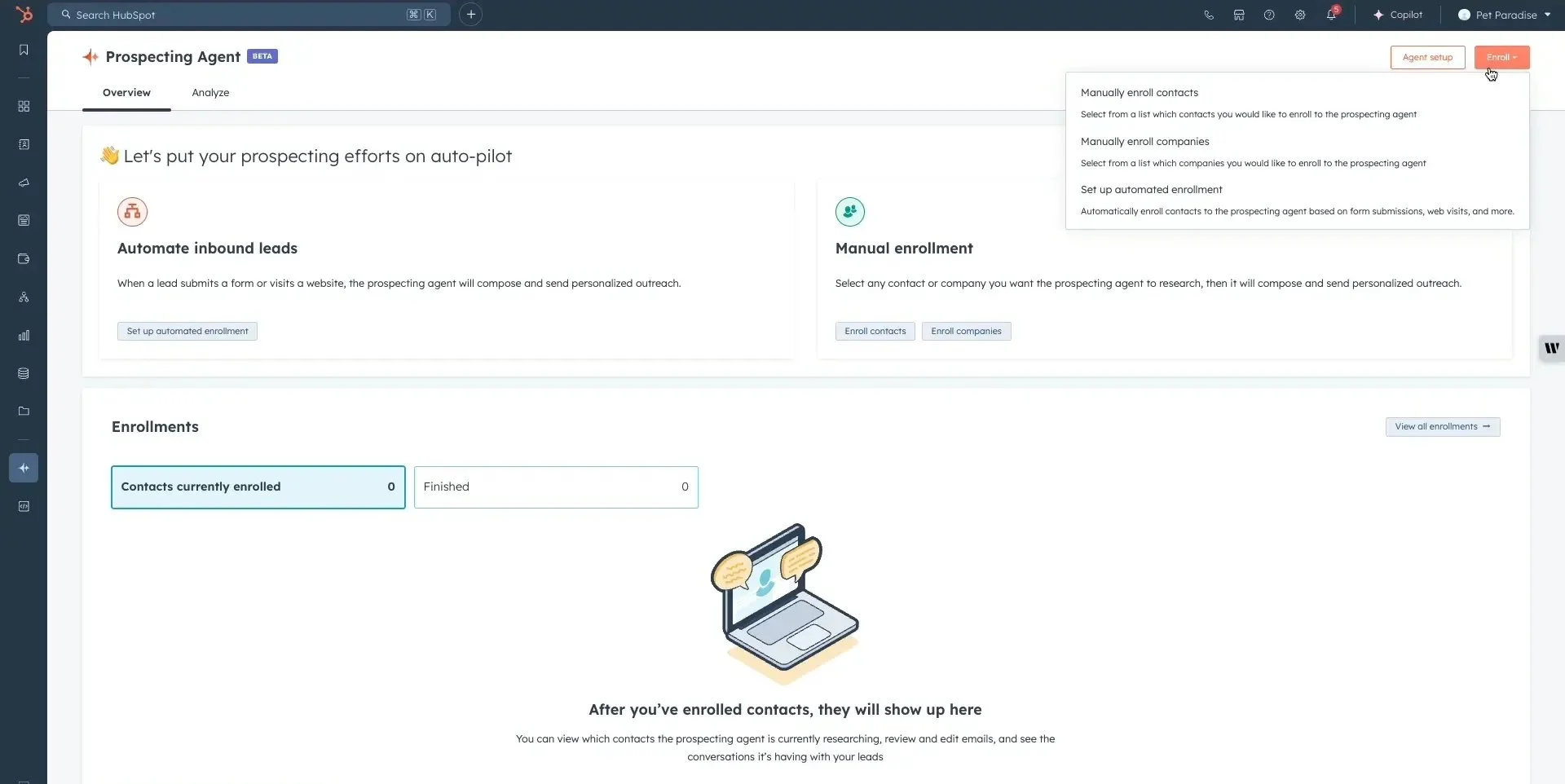 Enrolling contacts into the agent | Feed the content generator with prompts | Review the output | Review your enrollments and data